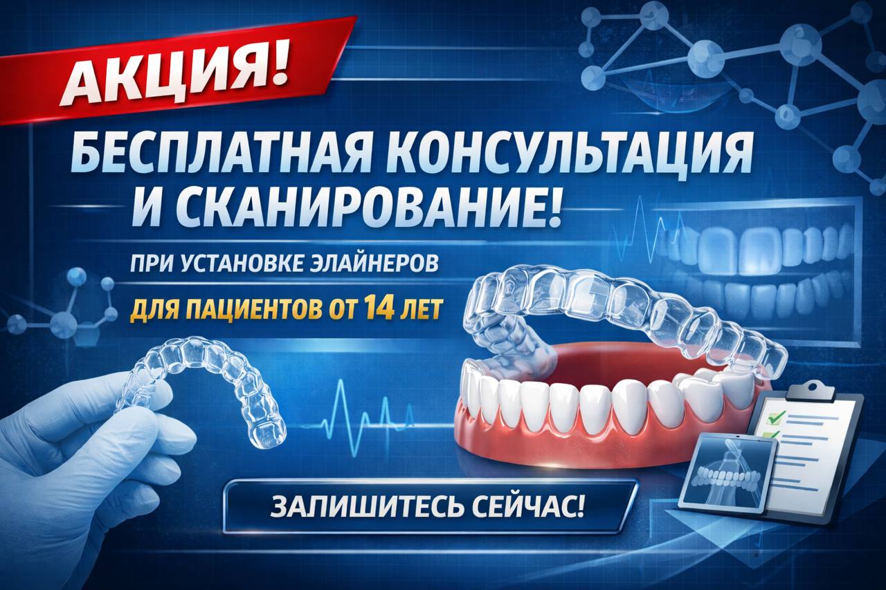 Запишитесь на прием к врачу ортодонту и получите бесплатную консультацию плюс сканирование и возможность проконсультироваться с представителем бренда элайнеров.
